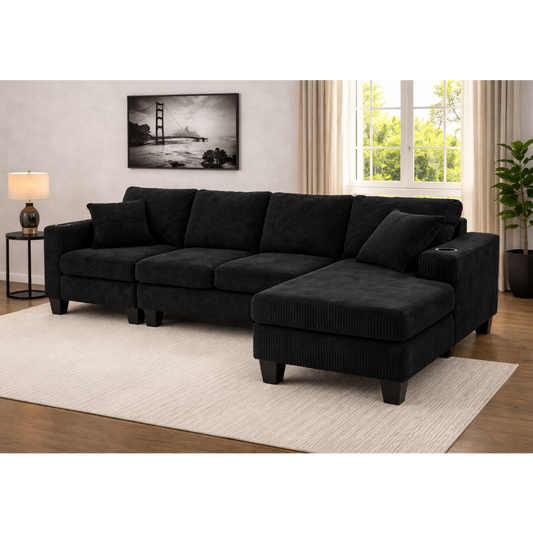 Aria Corduroy Reversible Pullout Sofa Bed Sectional