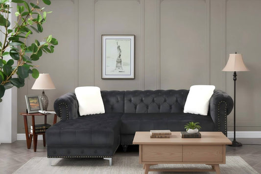 Velvet Fabric Sectional - Chaise Turns Into Floating Ottoman