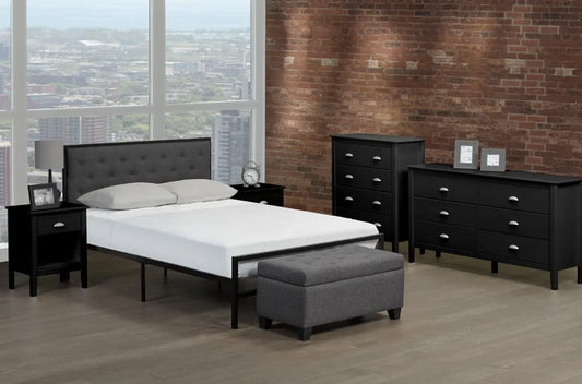 Platform Bed With Button-Tufted Fabric And 4 Drawers - Charcoal Grey