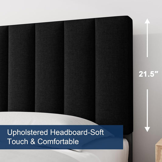 Upholstered Platform Bed Frame with Vertical Tufted Headboard