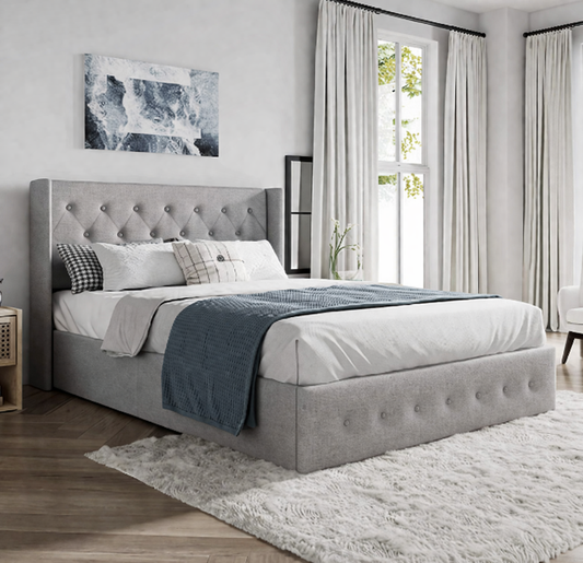 Lift up Storage Platform Bed/Button Tufted Wingback Headboard/Hydraulic Storage