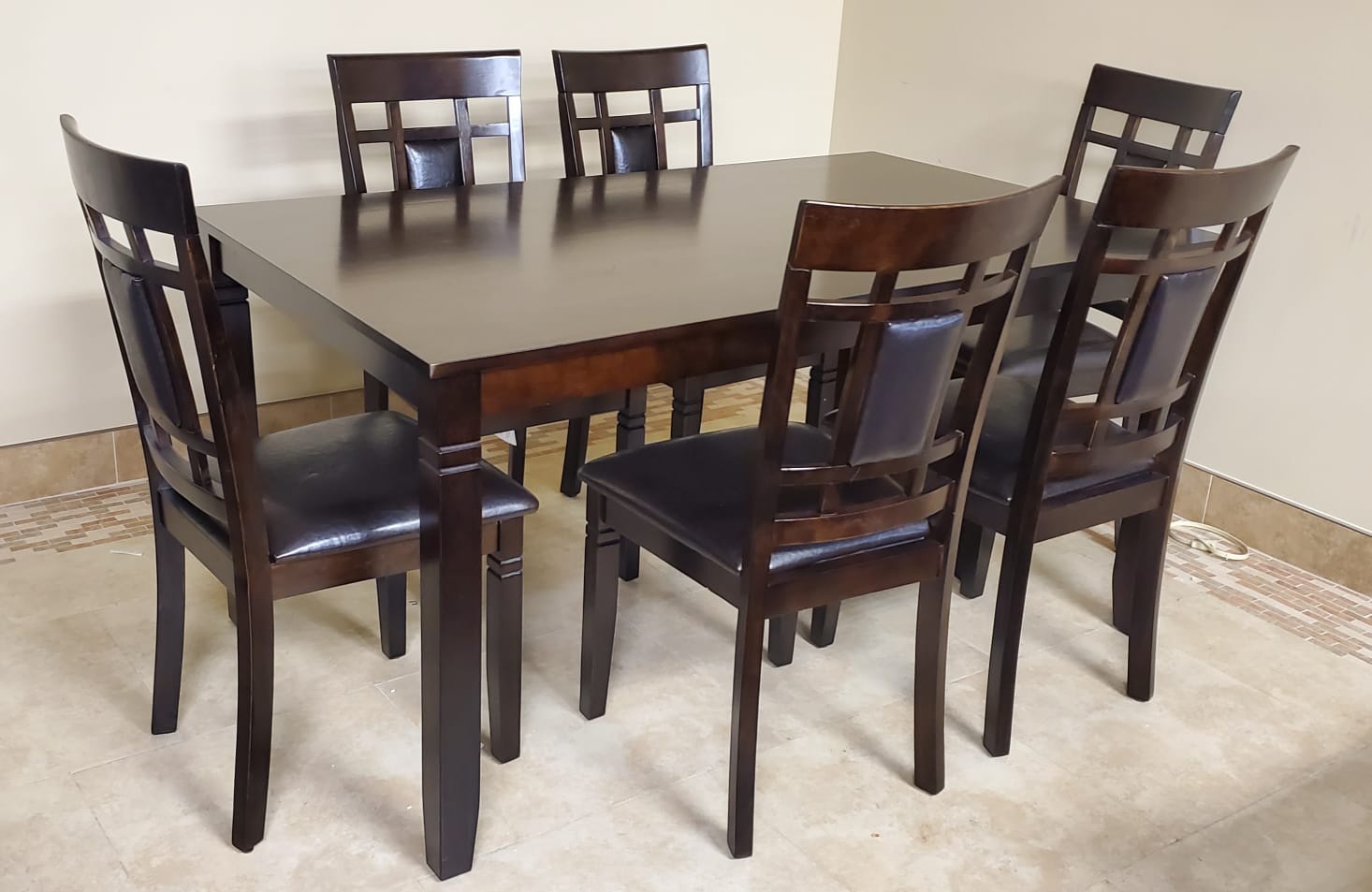 Upgrade your dining space with this Modern Solid Wood 7-Piece Dining Set, designed to offer both style and everyday functionality. The set includes a sleek rectangular dining table and six matching chairs, making it perfect for family meals or entertaining guests. The chairs feature a distinctive lattice back design and are upholstered in comfortable, neutral-toned fabric that pairs effortlessly with the wood finish. Clean lines and a contemporary silhouette allow this dining set to blend seamlessly into a variety of interior styles. Available in Espresso or Grey, it’s an ideal choice for those seeking practical dining furniture with a modern look.